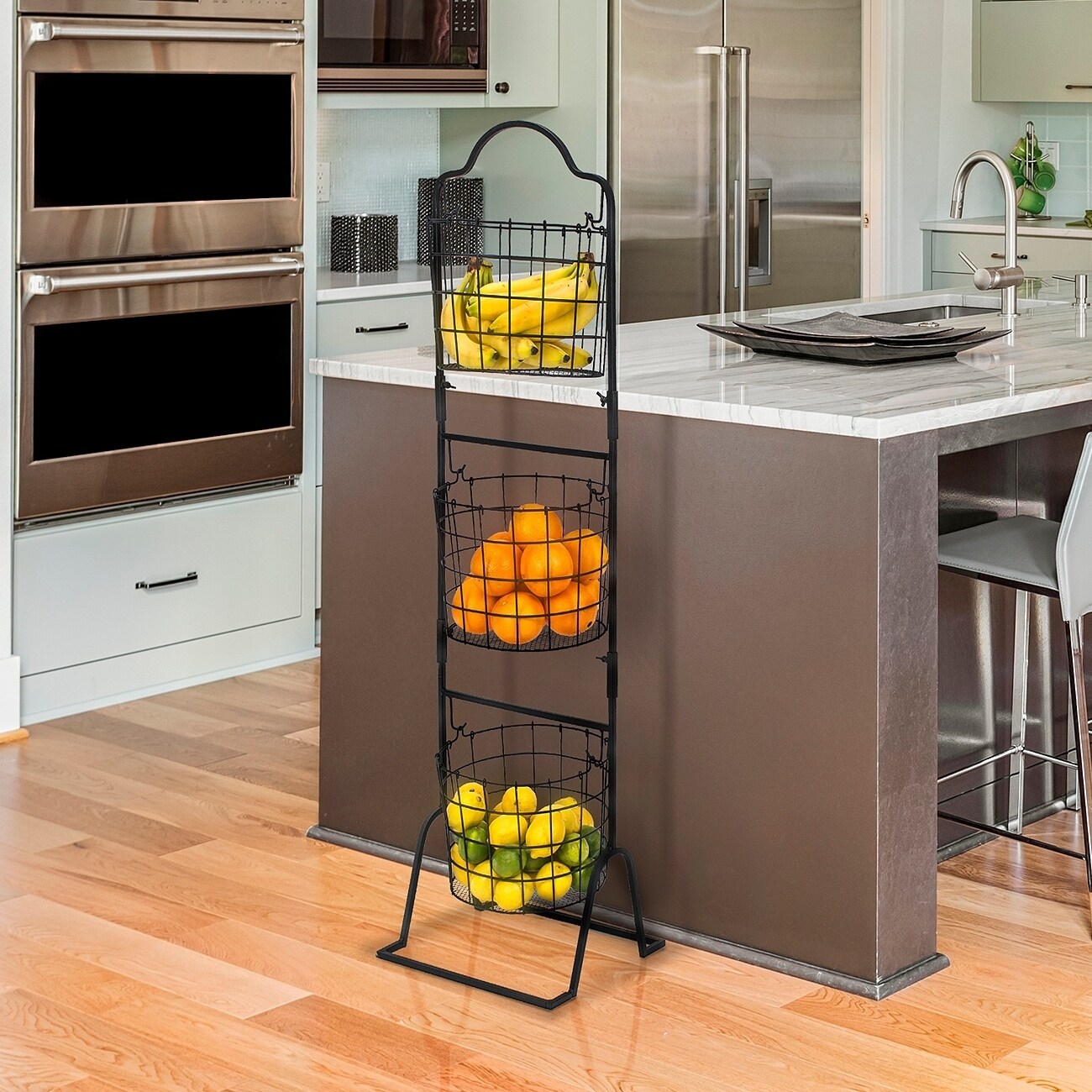 15% coupon applied at checkout save 15% with coupon. This metal display stand has 3 chicken wire baskets and arched metal supports that also make it easy to grab the top and place it where it is needed. Features a decorative style with a black color finish, elegant mesh storage baskets and a tripod base; 4.3 out of 5 stars with 4 ratings. Oval wicker baskets, set of 3.