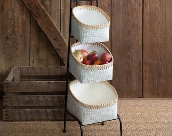 Dessert, cupcake, fruit & party three tiered platter. Hand woven red & white rope baskets with tassels, set of 3. Add height to a tabletop. 4 out of 5 stars. Tiered trays are so pretty and a great way to display smaller decor pieces in a large grouping. Oval wicker baskets, set of 3. 4.3 out of 5 stars with 4 ratings. Opens in a new tab +1 colors available in 2 colors. It features a resting stand and three removable baskets that are great for holding fruit, veggies, kitchen utensils, toilet paper, and more! See more ideas about tiered stand, 3 tier stand, decor. 5 out of 5 stars (46) $ 99.95 free shipping favorite add to 3 tier wall mounted fruit basket treelinewoodproducts. Shabby chic scalloped edge metal wall shelves, set of 2. This metal display stand has 3 chicken wire baskets and arched metal supports that also make it easy to grab the top and place it where it is needed.